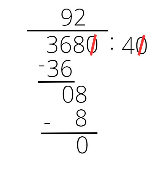 3680 : 40 = 92