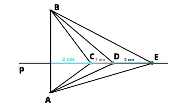 Na prostej p zaznacz wysokości opuszczone na odcinek AB, który ma 4 cm.