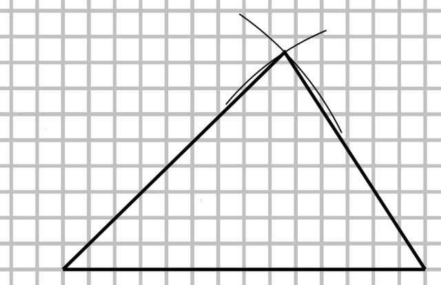 Żeby obliczyć obwód, dodaj do siebie długości boków. Narysuj bok długości i z jego końców poprowadź łuki o promieniach i . Punkt przecięcia tych łuków wyznaczy trzeci wierzchołek trójkąta.