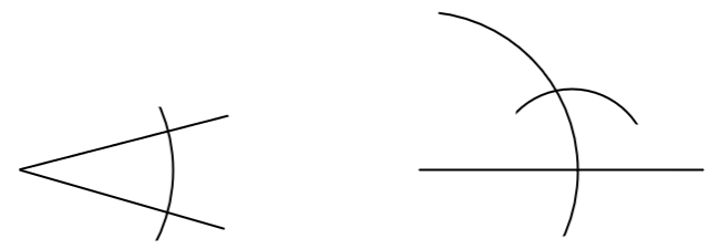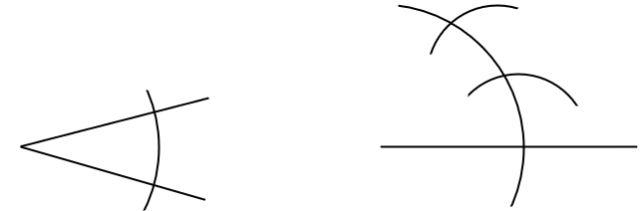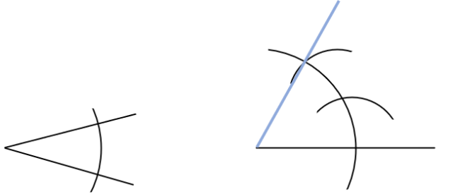 Na danym kącie oraz półprostej zakreśl łuki tą samą rozwartością cyrkla.