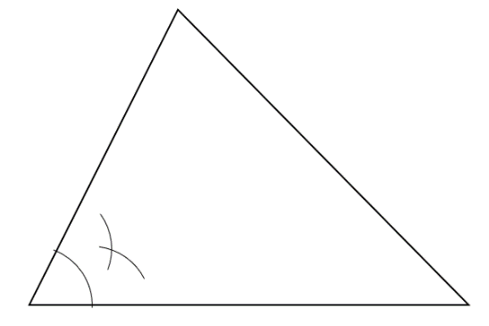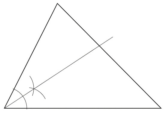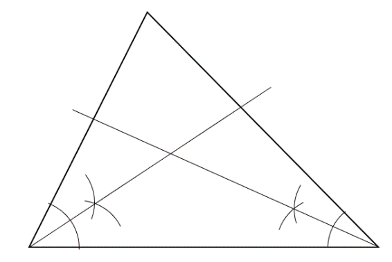 Wbij cyrkiel w punkt przecięcia otrzymanych półprostych – dwusiecznych kątów, a następnie odmierz odległość do boku trójkąta.