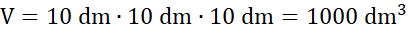 Objętość jest równa 1000, więc bok jest równy 10 dm.