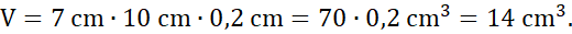 Użyj wzoru na objętość prostopadłościanu o długości a, szerokości b i wysokości c: