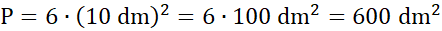 Pole powierzchni sześcianu | 294 cm2 | 1014 cm2 | 600 dm2 | 96 cm2 | 150 m2 |