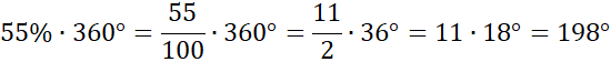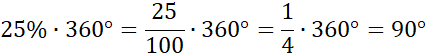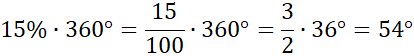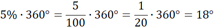 Przelicz procenty z kąta 360 stopni, czyli z kąta pełnego, który zajmuje cały diagram.