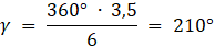 Miara kąta środkowego to 210°.