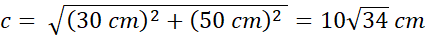 Następnie oblicz przeciwprostokątną trójkąta o przyprostokątnych długości 50 cm i 30 cm. Skorzystaj z twierdzenia Pitagorasa.