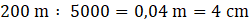 Jeśli długość rzeczywista jest w skali 1 : 5000, to znaczy, że wymiary zostały zmniejszone 5000 razy.