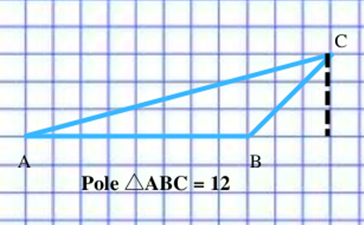 Podstawa trójkąta ABC ma długość 8 kratek, więc: 12 =