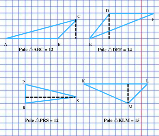 , skorzystaj z niego. Policz, ile kratek ma potencjalna podstawa trójkąta i dobierz wysokość odpowiedniej długości.