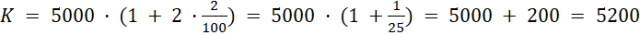 K0 to kapitał początkowy, czyli 5000 zł, n to czas oprocentowania w latach, czyli 2, a