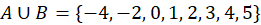 W tym zadaniu musisz wyznaczyć sumę zbiorów A= {-4, -2, 0, 2, 4} i B={0, 1, 2, 3, 4, 5}.