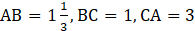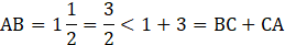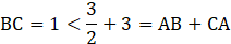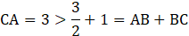 Punkty te nie są współliniowe. Nie spełniają również nierówności trójkąta, gdyż odcinek CA jest dłuższy niż suma odcinków AB i BC. Podane punkty nie istnieją.