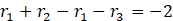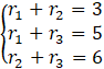 Odejmując dwa pierwsze równania i podstawiając do trzeciego: