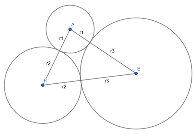 W tym zadaniu musisz obliczyć długości promieni okręgów, stycznych zewnętrznie, których środki są wierzchołkami trójkąta o bokach długości 3, 5 oraz 6.