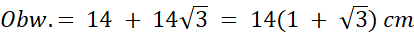 Zauważ, że przekątne przecinają się pod kątami 120° i 60°, i dzielą prostokąt na 4 trójkąty, w tym dwa równoboczne o boku równym 0,5d.