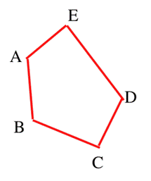 Wierzchołkami pięciokąta są punkty: A, B, C, D, E