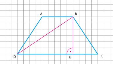 Na początku oblicz długość odcinka KC. Następnie oblicz długość wysokości trapezu (BK), korzystając z twierdzenia Pitagorasa. Aby obliczyć długość przekątnej trapezu ponownie wykorzystaj twierdzenie Pitagorasa.