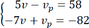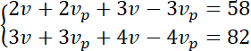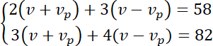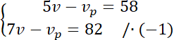 Wyznacz prędkość własną łodzi oraz prędkość prądu rzeki, jeśli pierwszego dnia łódź płynąca 2 godziny z prądem rzeki, a następnie 3 godziny pod prąd, przebyła trasę długości 58 km. Drugiego dnia płynąc 3 godziny z prądem i 4 godziny pod prąd, przypłynęła trasę o długości 82 km.