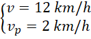 Prędkość własna łodzi wynosi 12 km/h, a prędkość prądu rzeki 2 km/h.