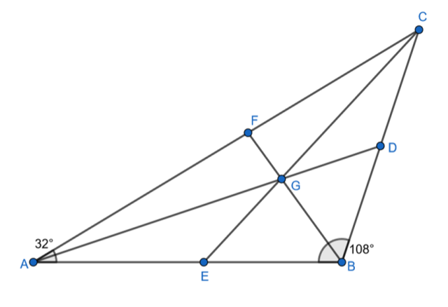 Trójkąt AEG ma miary kątów: