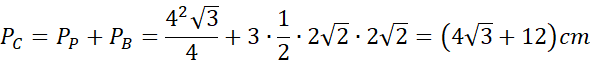 Wyznacz pole powierzchni całkowitej ostrosłupa prawidłowego trójkątnego, którego ściany boczne są trójkątami prostokątnymi, a krawędź podstawy ma długość 4 cm.