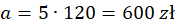 | Kwota (zł) | 600 | 1440 | 1200 | 2700 | 3000 |