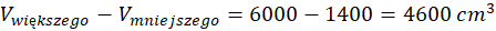 Oblicz o ile centymetrów sześciennych objętość początkowego graniastosłupa jest większa od objętości mniejszego.