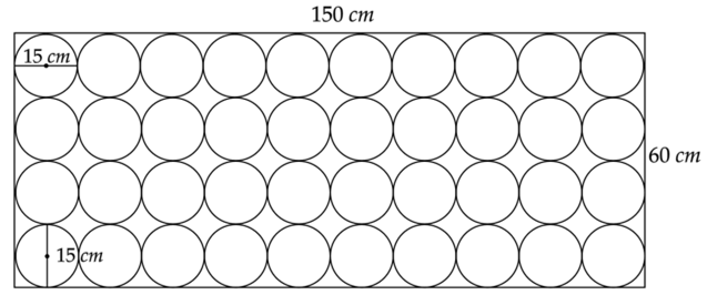 Sprawdź, ile średnic koła o promieniu 15 cm zmieści się na boku prostokąta długości 150 cm.