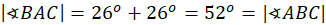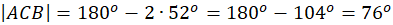 Ponieważ trójkąt jest równoramienny, to miary jego kątów przy podstawie są równe.