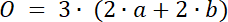 Obwód dużego prostokąta o wymiarach 3 ∙ a × 3 ∙ b: