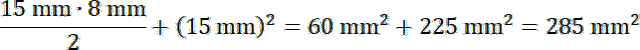 Linie na rysunku dzielą figury na trójkąty i kwadrat. Zmierz boki i wysokości tych trójkątów i bok tego kwadratu linijką. Przedstaw pola figur jako sumy pól i skorzystaj z tego, że pole trójkąta o boku