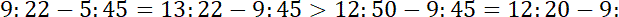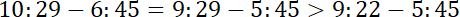 Zauważ, że jeśli dodasz taki sam czas do godziny odjazdu i przyjazdu, to czas przejazdu się nie zmieni. Dodaj więc taki czas, żeby godzina odjazdu obydwu porównywanych pociągów była taka sama.