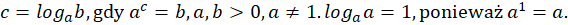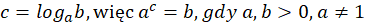 Logarytmem liczby b jest wykładnik c potęgi, do której trzeba podnieść podstawę a, żeby dostać liczbę b.