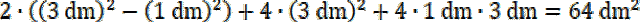 Odejmij od objętości i pola prostopadłościanu objętość i pole kształtu wyciętej dziury.
