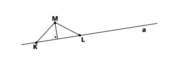 Pole trójkąta równoramiennego KLM wynosi 3 centymetry kwadratowe. Wiedząc, że podstawa KL leży na prostej a, narysuj ten trójkąt.