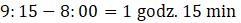 W tym zadaniu musisz obliczyć różnicę między 8:00 a 9:15.