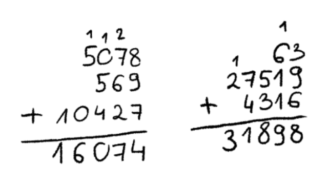 W pierwszej kolejności zapisz cyfry pod sobą tak, aby jednostki były pod jednostkami itp. Następnie dodaj do siebie kolejno jedności, dziesiątki i setki. Gdy liczba, jaką otrzymasz, jest większa od 9 (dwucyfrowa), dodaj ilość jej dziesiątek do następnej liczby. Wyniki kolejnych działań zapisuj kolejno pod rzędem jednostek, dziesiątek itp.