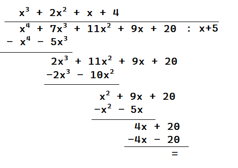 Aby rozwiązać zadanie, wykonaj dzielenie wielomianów sposobem pisemnym, jest to sposób analogiczny do dzielenia pisemnego dwóch liczb całkowitych.