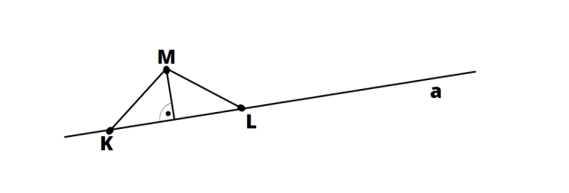 Zauważ, że odległość punktu M od prostej a będzie równa wysokości tego trójkąta. Będzie ona wynosić 1,5 cm. By pole trójkąta było równe 3 cm2, to długość podstawy KL musi wynosić 4 cm. Sprawdzenie: