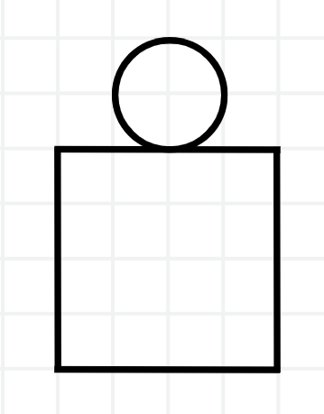Na rysunku widzimy walec o wysokości 2 cm i promieniu podstawy 1 cm, na którym położono kulę o promieniu 0,5 cm. Narysuj tę konstrukcję widzianą z boku.