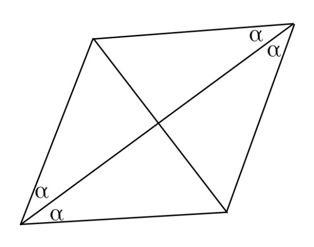 Przekątne w rombie dzielą kąt na 2 równe kąty.