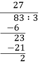 W tym zadaniu odpowiedz, jaka jest reszta po podzieleniu liczby 83 przez 3.