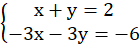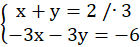 Pomnóż pierwsze równanie przez 3, aby otrzymać przy niewiadomej x liczby przeciwne, a następnie dodaj do siebie równania.