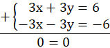 Wszystkie niewiadome oraz wiadome się redukują, co oznacza, że układ równań jest nieoznaczony, ponieważ układ równań ma nieskończenie wiele rozwiązań.