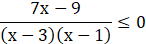 Określamy dziedzinę wyrażenia, wiedząc, że mianownik ma być niezerowy. Przerzucamy wszystkie wyrazy na jedną stronę nierówności i wprowadzamy na wspólną kreskę ułamkową. Dla dowolnych liczb rzeczywistych znak ilorazu jest taki sam jak znak iloczynu, więc rozpatrujemy wielomian będący iloczynem licznika i mianownika. Obliczamy jego miejsca zerowe i rozwiązujemy nierówność dla funkcji homograficznej.