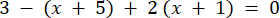 W tym zadaniu musisz rozwiązać równanie. 3 - (x + 5) + 2 (x + 1) = 0