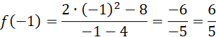 Zauważ, że mianownik nie może być równy zero i zapisz dziedzinę danego wyrażenia. Następnie podstaw do wzoru funkcji