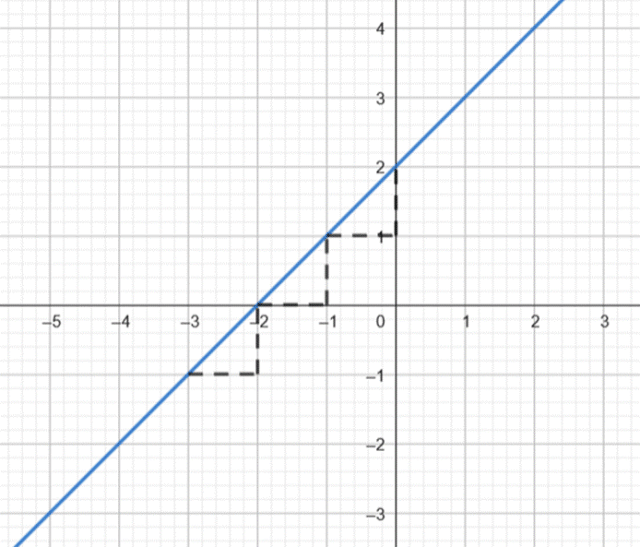 zauważ, że przecina ona oś OY w punkcie (0,2), a wzrost argumentu o jedną jednostkę odpowiada wzrostowi funkcji o jedną jednostkę i przedstaw to w układzie współrzędnych.