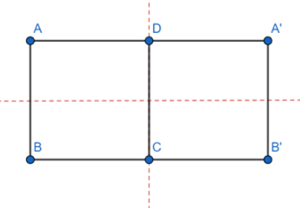 Oblicz liczbę symetrii figury zbudowanej z kwadratu i kwadratu symetrycznego do niego względem prostej zawierającej jeden z boków.
